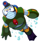 Bubble Man Bubble Man has joined the tournament! If you thought Bubble Man was going to be worthless in this tournament he's here to burst your bubble. He's back and now he can fight anywhere! Main Weapon: Bubble Lead Weakness: Metal Blade Ineffective: Water Weapons Techniques and other tools BUBBLE HOP: Bubble Man can jump an average height BUBBLE LEAD: Bubble Man can create a projectile that crawls along ground BUBBLE SHOT: Bubble Man can shoot a sharp harpoon projectile BUBBLE TRAP: Bubble Man can create a giant bubble that traps enemies BUBBLE MINE: Bubble Man can create a mines that explode on contact BUBBLE SHIELD: Bubble Man can create a bubble shield around himself BUBBLE SWIM: Bubble Man can swim under water at a high speed |